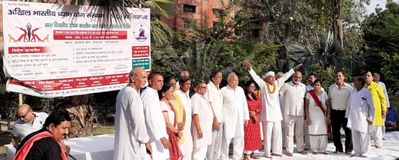 गाजियाबाद। अखिल भारतीय ध्यान योग संस्थान (रजि०) के तत्वावधान में आठ दिवसीय तृतीय बाल योग एवं संस्कार शिविर हर्षोल्लास से संपन्न हुआ।समापन योग सत्र का शुभारंभ सर्वश्री परमात्मा शरण, सुभाष चन्द अग्रवाल,सुशील गुप्ता,अखिलेश गुप्ता एवं संस्थान की कार्यकारिणी के सदस्यों ने दीप प्रज्वलित कर कम्पनी बाग,घंटाघर में किया।उपाध्यक्ष लक्ष्मण गुप्ता ने शिविरार्थियों को वज्रासन में बैठाया,फिर उष्ट्रासन,शशांकासन और धनुरासन का अभ्यास कराया।