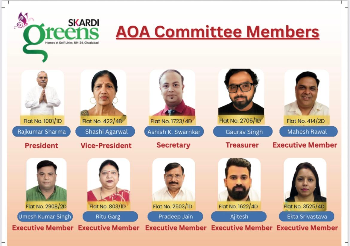 निर्वाचन अधिकारी नितिन जैन ने पहली एओए टीम के सभी पदाधिकारियों एवं कार्यकारिणी सदस्यों को सोसायटी के क्लब हाउस में शपथ दिलायी। शपथ लेने के बाद राजकुमार शर्मा ने कहा की वो अपनी कमेटी सदस्यों व सोसायटी के सभी निवासियों के सुझाव पर सोसायटी का विकास कराने का हर संभव प्रयास करेंगे। इस अवसर पर प्रीत मोहन सिंह, आलोक चौधरी, अतिन अग्रवाल, सतीश गुप्ता सहित कई गणमान्य रेजिडेंट्स उपस्थित थे।