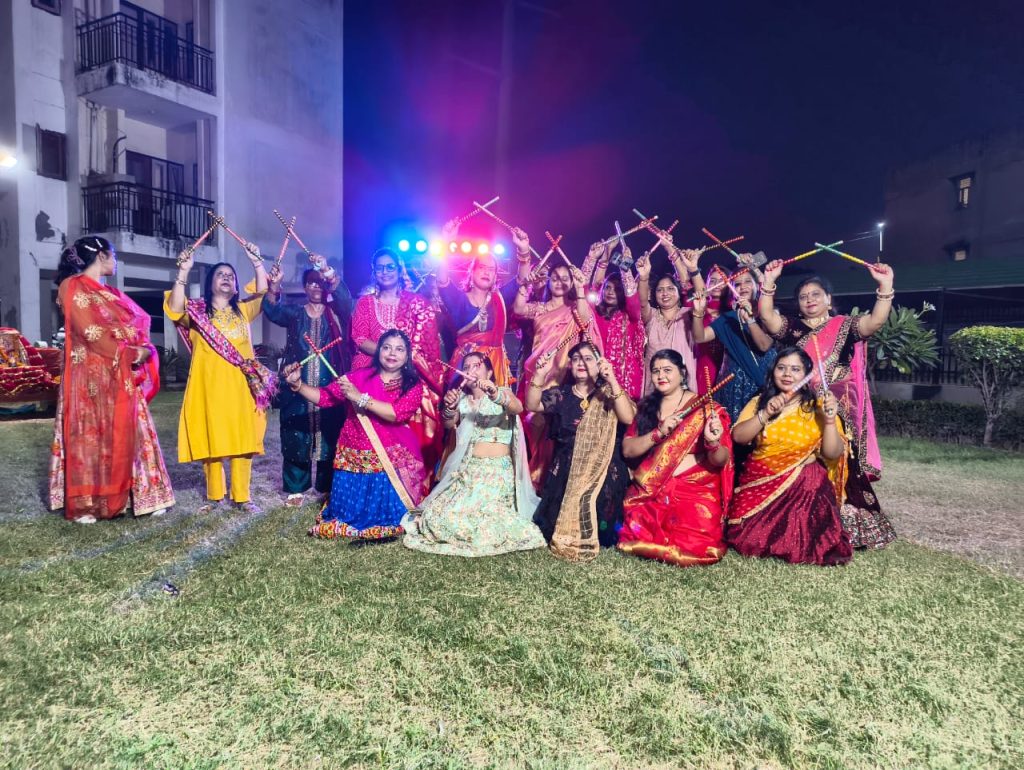 गाजियाबाद। वसंत रोड स्थित चंद्रशिला अपार्टमेंट में रविवार को नवरात्रि पर्व पर उल्लासपूर्ण माहौल में विशेष आयोजन किया गया। सोसाइटी की महिलाओं ने पूरे श्रद्धा भाव से माता रानी की पूजा-अर्चना की और भक्ति व संगीत के संग-संग ‘डांडिया रास’ का भरपूर आनंद लिया।