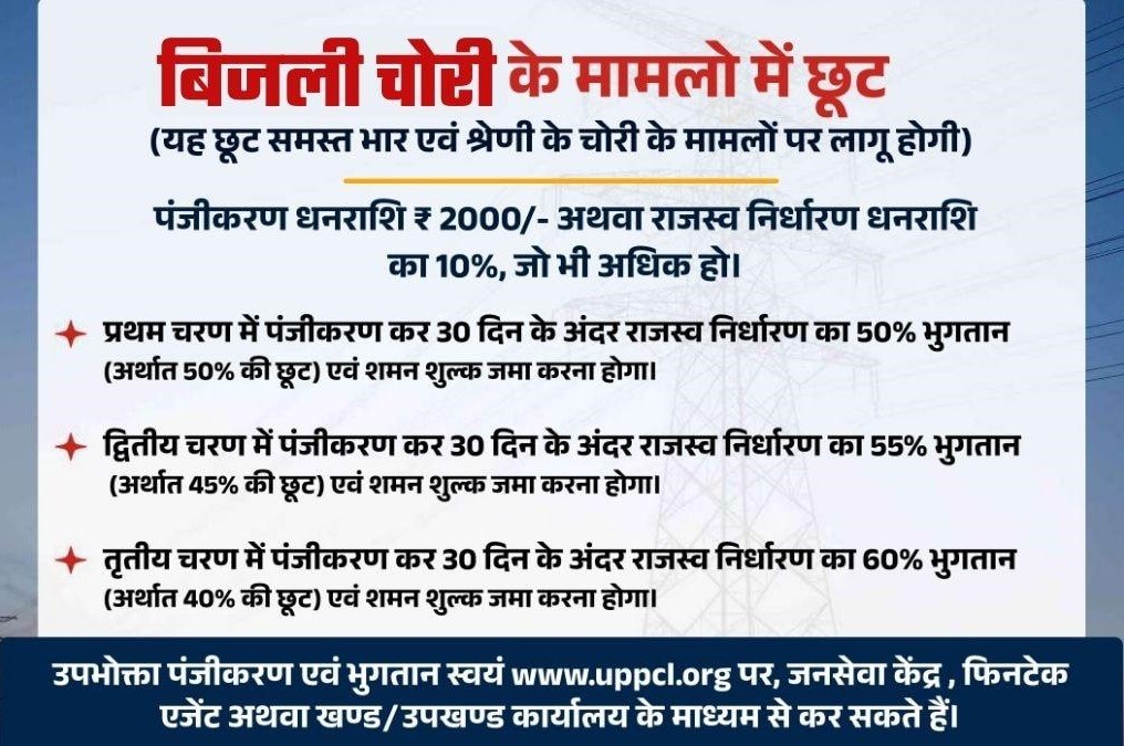 यदि आप भी लंबे समय से बकाया बिजली बिल को लेकर परेशान हैं, तो यह आपके लिए बड़ा मौका है। जल्दी रजिस्ट्रेशन कर छूट का अधिक से अधिक लाभ उठाएं।
