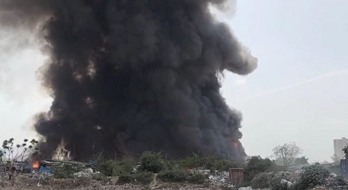 प्रत्यक्षदर्शियों के मुताबिक आग इतनी भीषण है कि उसके ऊंचे-ऊंचे धुएं के गुबार आसमान तक उठते नजर आ रहे हैं। आग लगने से आसपास के इलाके में अफरा-तफरी का माहौल है और लोग दहशत में अपने घरों से बाहर निकल आए हैं।