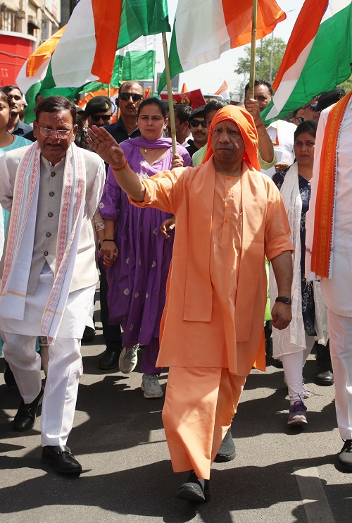मुख्यमंत्री योगी आदित्यनाथ इस पदयात्रा में केन्द्रीय मंत्री एवं भाजपा प्रदेश अध्यक्ष पंकज चौधरी, उपमुख्यमंत्री केशव प्रसाद मौर्य व ब्रजेश पाठक और सहयोगी दलों के नेता सहित मंत्रिमंडल के सदस्यों तथा भाजपा की विभिन्न इकाइयों के पदाधिकारियों के साथ अग्रिम पंक्ति में चल रहे थे।