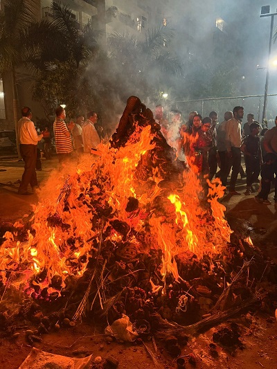 अफसर सिटी 2 में अपार्टमेंट ओनर्स एसोसिएशन (एओए) की अगुवाई में सामूहिक होलिका दहन का आयोजन किया गया। वैदिक मंत्रोच्चार के बीच होली प्रज्वलित की गई। सोसायटीवासियों ने एक-दूसरे को पर्व की शुभकामनाएं दीं और सामाजिक सौहार्द का संदेश दिया। आयोजन के दौरान अनुशासन और सुरक्षा का विशेष ध्यान रखा गया।
